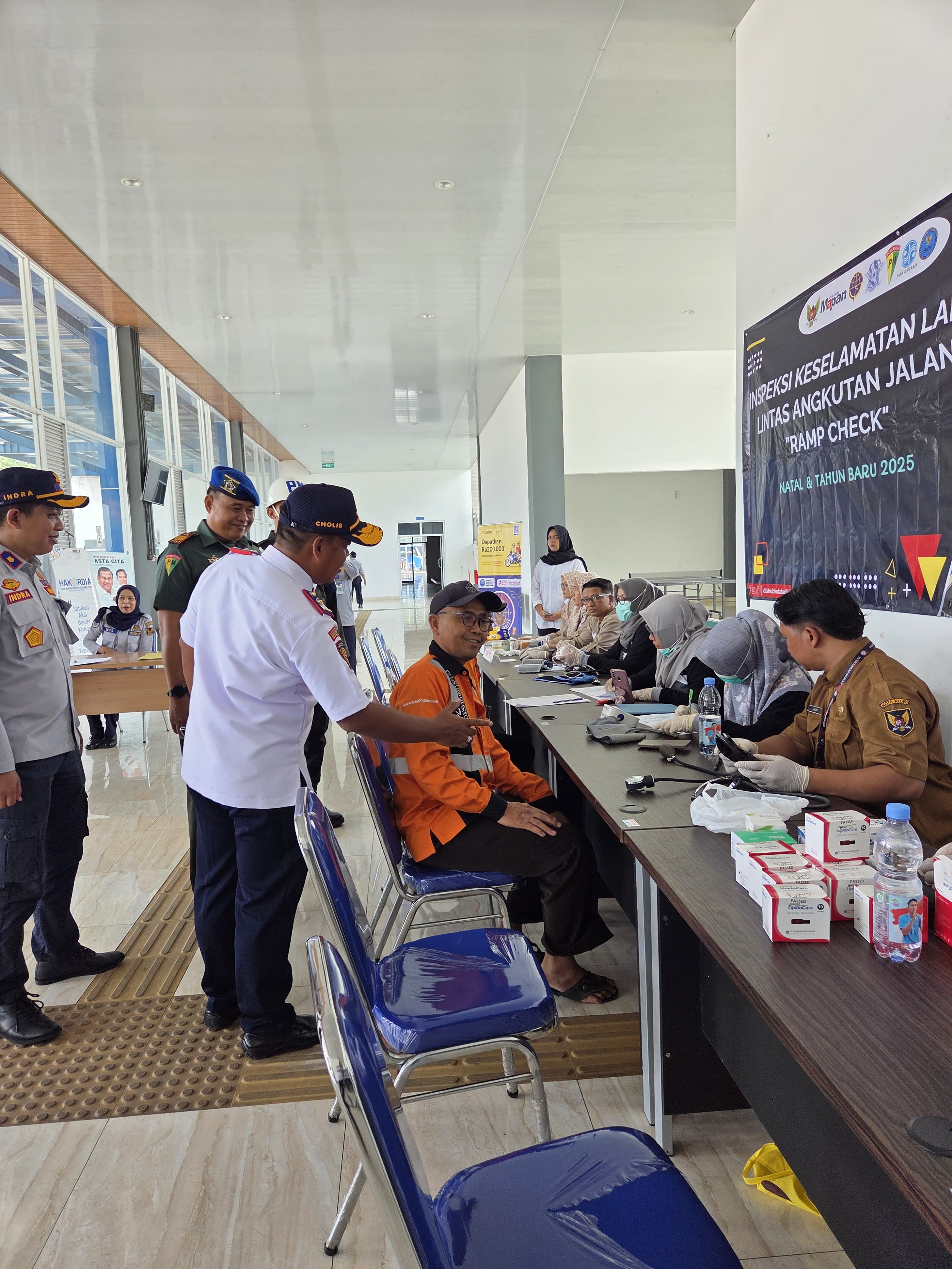 Menjelang Hari raya Natal dan libur tahun baru 2026, Pemerintah Kota Kediri melalui Dinas Perhubungan bersama UPT P3 Provinsi Jawa Timur, Badan Narkotika Nasional (BNN) Kediri, Satlantas Polres Kediri Kota, Dinas Kesehatan, Korsatpel Terminal Tamanan, Jasa Raharja, dan Subdenpom Kediri melakukan ramp check angkutan umum, Senin (8/12). Upaya tersebut ditempuh guna memastikan seluruh armada angkutan umum benar-benar layak jalan serta memenuhi standar perizinan yang berlaku. Kegiatan yang berlokasi di Terminal Tipe A Tamanan Kota Kediri itu juga menjadi bagian dari upaya menciptakan keamanan dan keselamatan transportasi selama momen libur panjang Nataru.