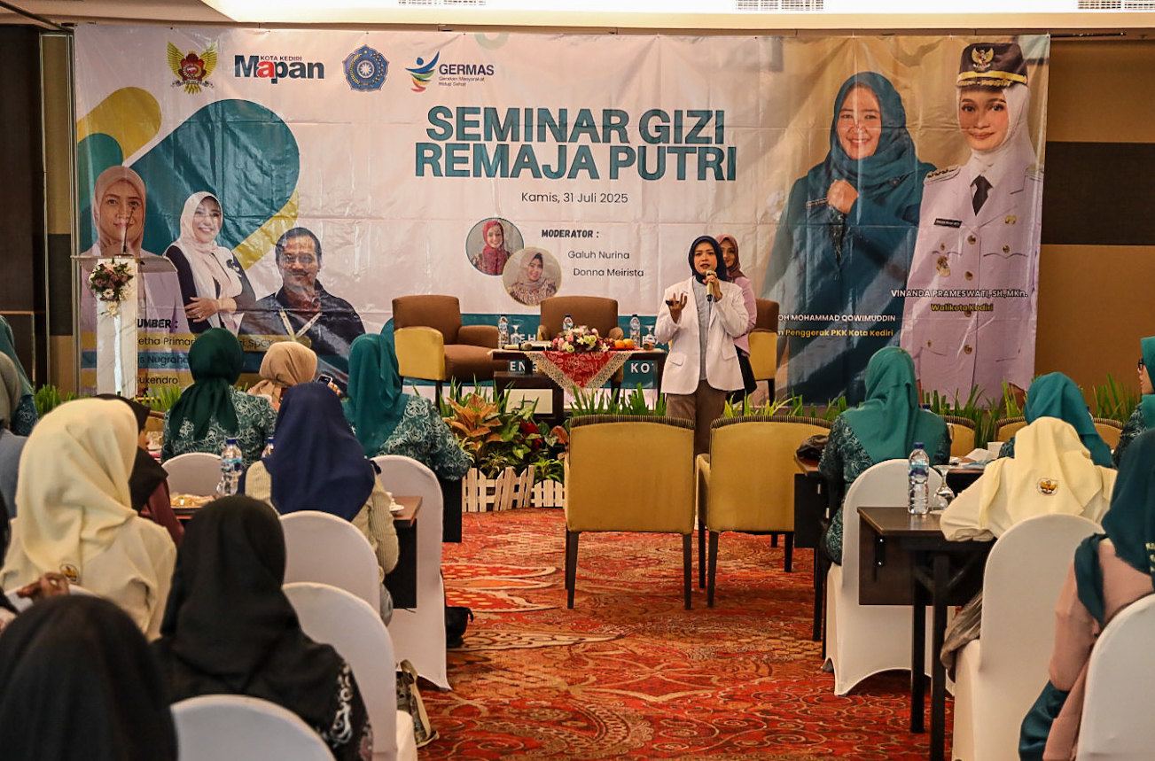 Dalam rangka meningkatkan pengetahuan remaja putri tentang gizi sebagai upaya untuk pencegahan stunting pada generasi mendatang, Pemerintah Kota Kediri melalui Pokja 4 PKK Kota Kediri berkolaborasi dengan Dinas Kesehatan menggelar Seminar Gizi Remaja Putri, Kamis (31/7) di salah satu hotel di Kota Kediri.