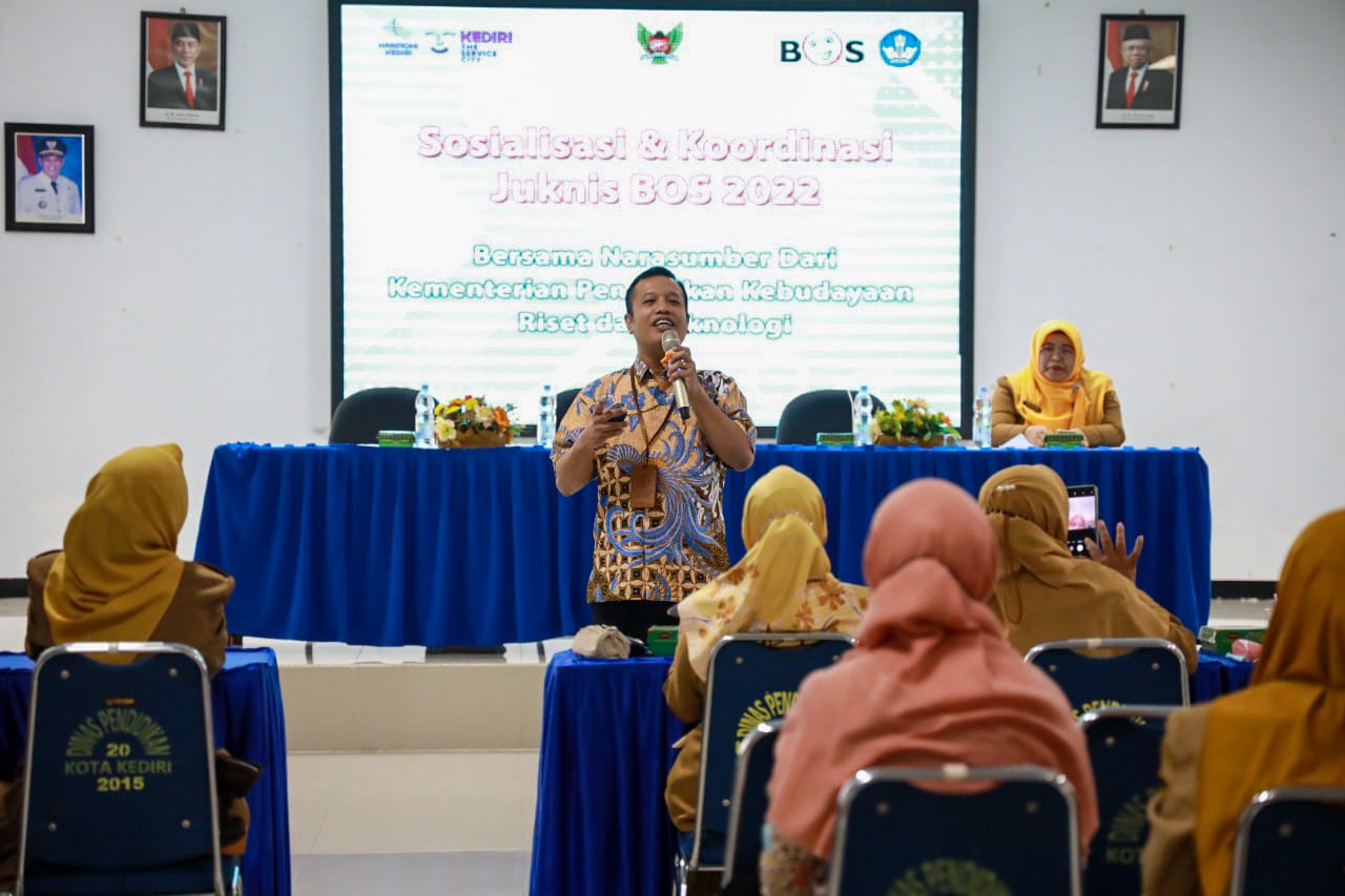 Sebagai wujud dukungan Pemkot Kediri terhadap misi Walikota Kediri dalam mewujudkan tata kelola pemerintahan yang bersih, transparan, dan berintegritas, Dinas Pendidikan Kota Kediri pagi ini menggelar Sosialisasi Pemanfaatan Dana Bantuan Operasional Sekolah (BOS) Tahun 2022, Selasa (21/6). Dengan dihadiri puluhan Kepala Sekolah SD dan SMP, sekaligus Pengawas SD dan SMP se-Kota Kediri, kegiatan yang digelar di Aula Ki Hajar Dewantara Dinas Pendidikan Kota Kediri tersebut berjalan secara tertib peotokol kesehatan.