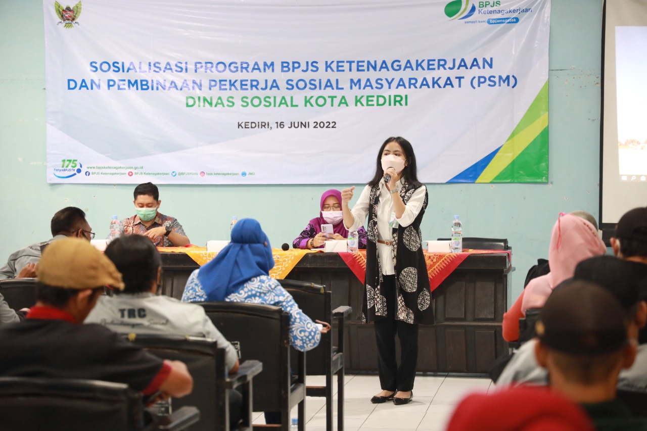 Dalam upaya memaksimalkan kinerja Pekerja Sosial Masyarakat (PSM) dalam melaksanakan tugas dan fungsinya, Dinas Sosial Kota Kediri mengadakan acara pembinaan bertempat di Aula Kantor Dinas Sosial Kota Kediri, Kamis (16/3). Selain memberikan pembinaan, Dinas Sosial juga memberikan sosialisasi program BPJS Ketenagakerjaan berkolaborasi dengan BPJS Ketenagakerjaan Kota Kediri.