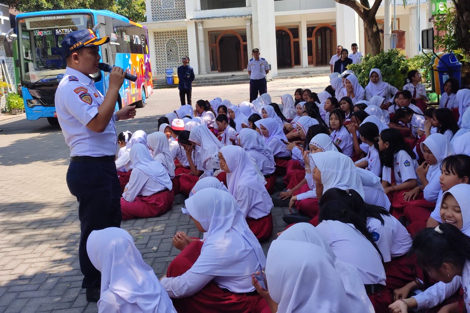 Populerkan penggunaan bus sekolah di kalangan siswa baru, Pemerintah Kota Kediri melalui Dinas Perhubungan menggelar sosialisasi tentang angkutan sekolah di SMPN 7 dan SMPN 2 Kediri, Senin (21/7). Didik Catur, Kepala Dinas Perhubungan Kota Kediri saat dihubungi secara terpisah menyebutkan bahwa sosialisasi ini merupakan rangkaian kegiatan yang sebelumnya telah dilakukan di beberapa sekolah.