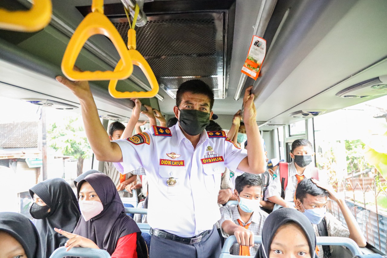 Pandemi Covid-19 berimbas terhadap sistem pembelajaran yang sempat beralih ke via daring. Hal ini membuat bus sekolah gratis yang biasanya beroperasi terpaksa harus vakum. Namun seiring dengan pelaksanaan PTM 100%, bus sekolah gratis ini kembali beroperasi.
