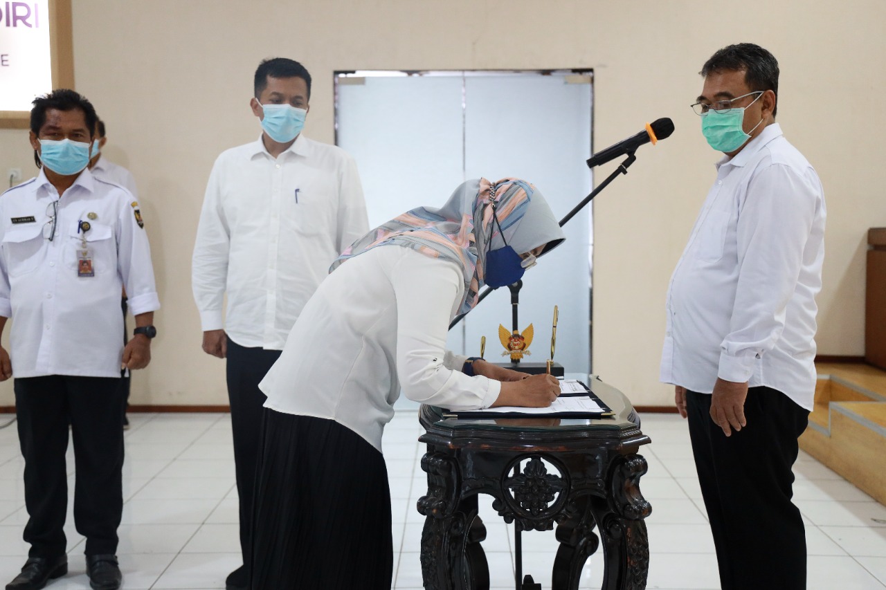 Sekretaris Daerah Kota Kediri, Bagus Alit melantik 277 pejabat fungsional di lingkungan Pemerintah Kota Kediri, Jum'at (31/12). Pelantikan tersebut dilaksanakan di ruang Kilisuci, Balaikota Kediri dan diikuti oleh peserta pelantikan secara virtual.