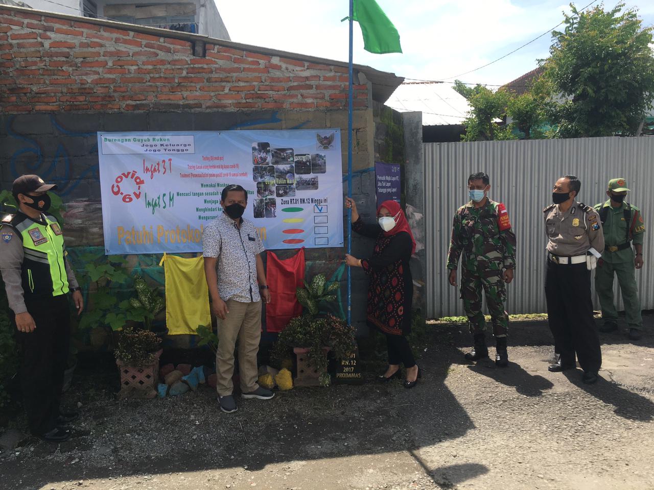 Empat bendera dengan warna yang berbeda, Jum’at pagi (19/2/2021) dikibarkan di wilayah Kelurahan Burengan, Kecamatan Pesantren Kota Kediri. Pengibaran bendera ini sebagai langkah untuk memantau perkembangan penanganan Covid-19.