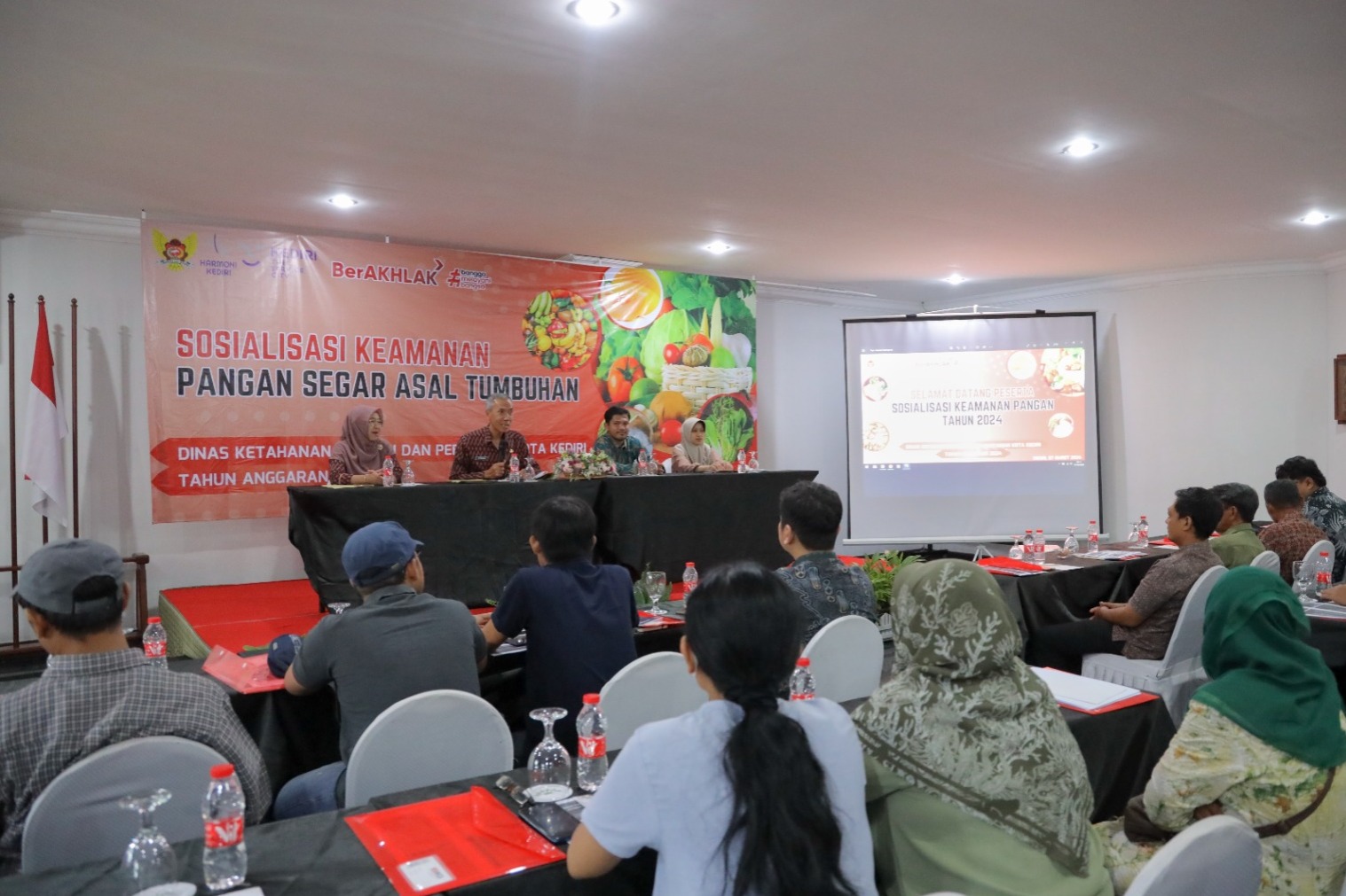 Guna mendorong para pelaku usaha pangan segar agar lebih peduli akan pentingnya legalitas atau izin edar dan kemasan yang sesuai, hari ini Dinas Ketahanan Pangan dan Pertanian Kota Kediri menggelar sosialisasi keamanan pangan segar asal tumbuhan yang mengundang 30 orang pelaku usaha dari berbagai sektor, yang berlokasi di salah satu hotel di Kota Kediri, Kamis (7/3).