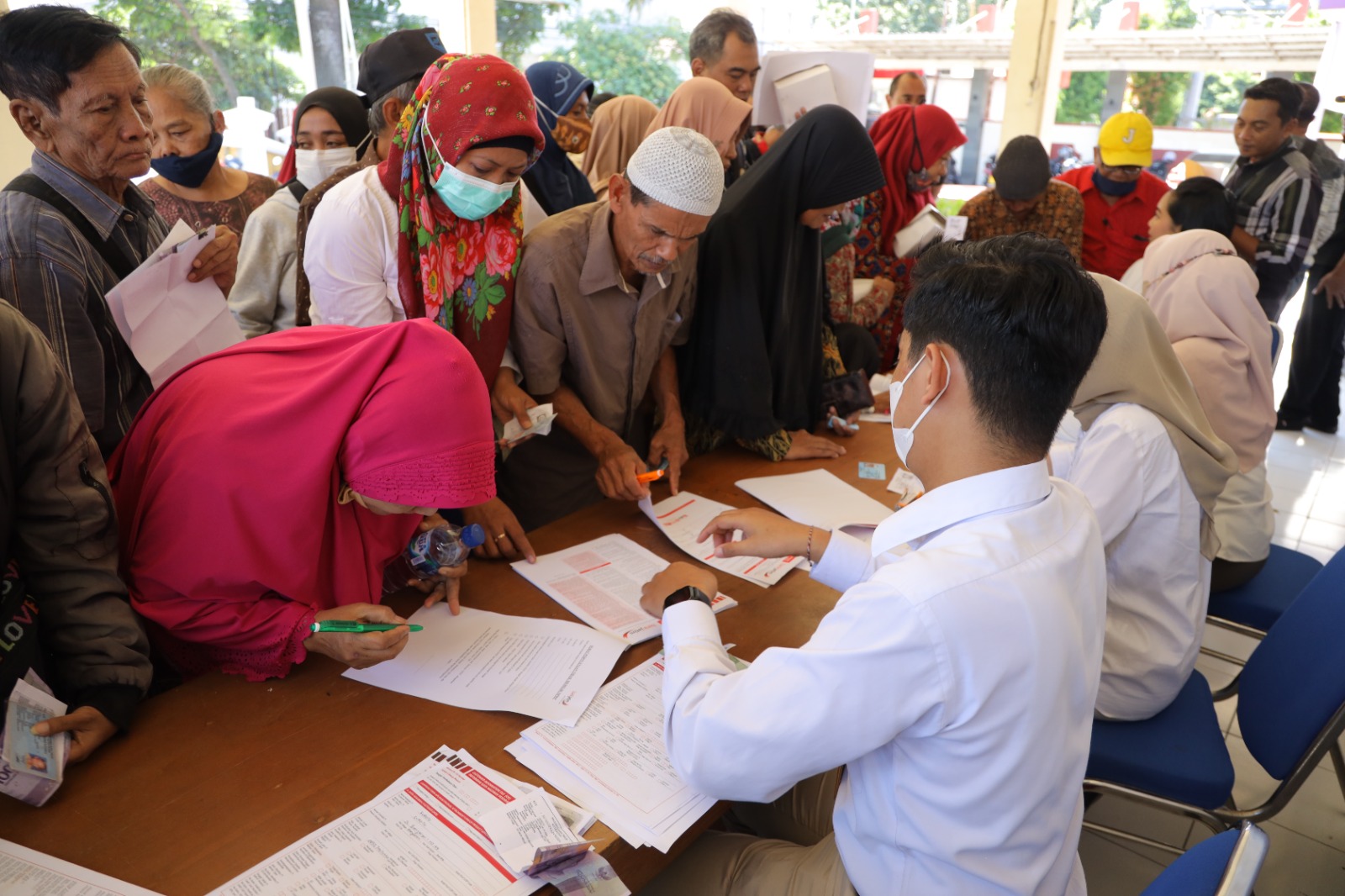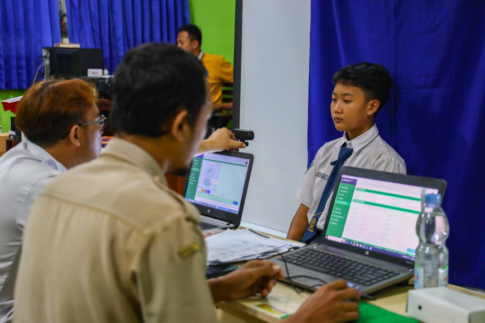 Diawali di SMPN 7 Kota Kediri, seluruh siswa-siswi tampak antre untuk melakukan perekaman langsung di sekolah.