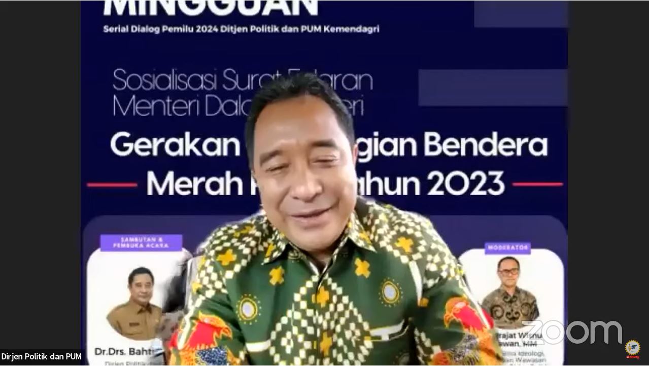 Mengawali gerakan ini, hari ini Kamis (11/5) Dirjen Politik dan PUM menggelar sosialisasi surat edaran Menteri Dalam Negeri Nomor 400.10.1.1/3358/Polpum tentang Gerakan Pembagian Bendera Merah Putih secara daring. Dirjen Politik dan PUM, Bahtiar mengatakan bahwa tahun ini merupakan momen yang tepat untuk memberi pesan pada masyarakat, bahwa di tahun politik...