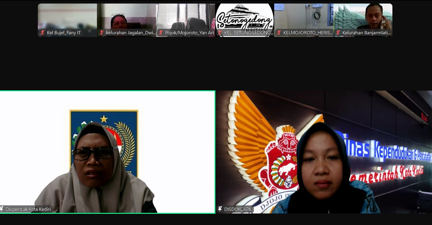 Guna menyempurnakan pelaksanaan program Adminduk All in Kelurahan yang telah dilaunching beberapa waktu lalu, Pemerintah Kota Kediri melalui Dispendukcapil menggelar rapat koordinasi evaluasi dan monitoring pelayanan Adminduk All In Kelurahan, Kamis (12/6). Rapat yang diselenggarakan melalui _zoom meeting_ ini, mengundang seluruh Camat, Lurah, serta operator SIAK Kelurahan dan Kecamatan dari tempat kerja masing-masing.
