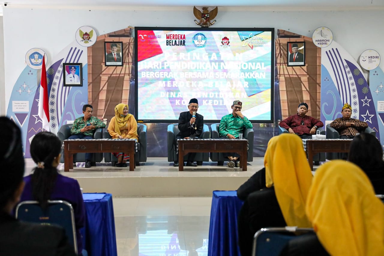 Peningkatan kualitas pendidikan di Kota Kediri menjadi tema sarasehan yang digelar Dinas Pendidikan Kota Kediri dalam rangka Peringatan Hari Pendidikan Nasional. Bertempat di Ruang Ki Hajar Dewantara, Rabu (3/5) kegiatan ini sekaligus sebagai refleksi bagi Dinas Pendidikan terkait pelayanan pendidikan yang telah diberikan. Menariknya, saat mengikuti sarasehan para peserta memakai pakaian adat dan tenun ikat.